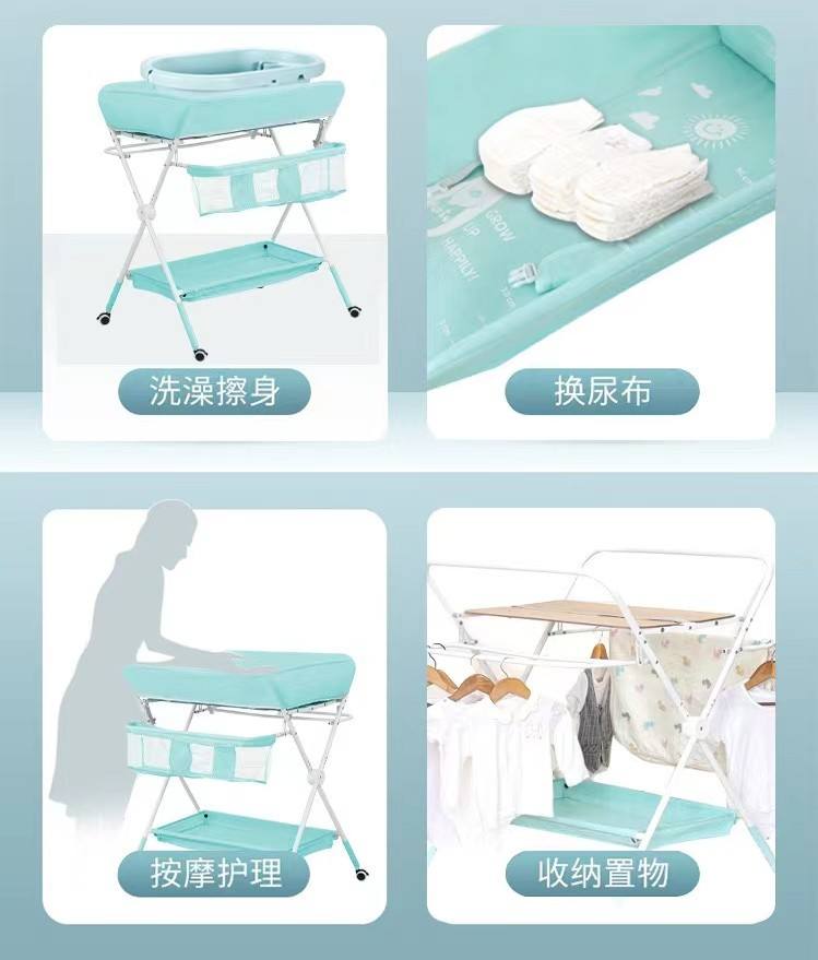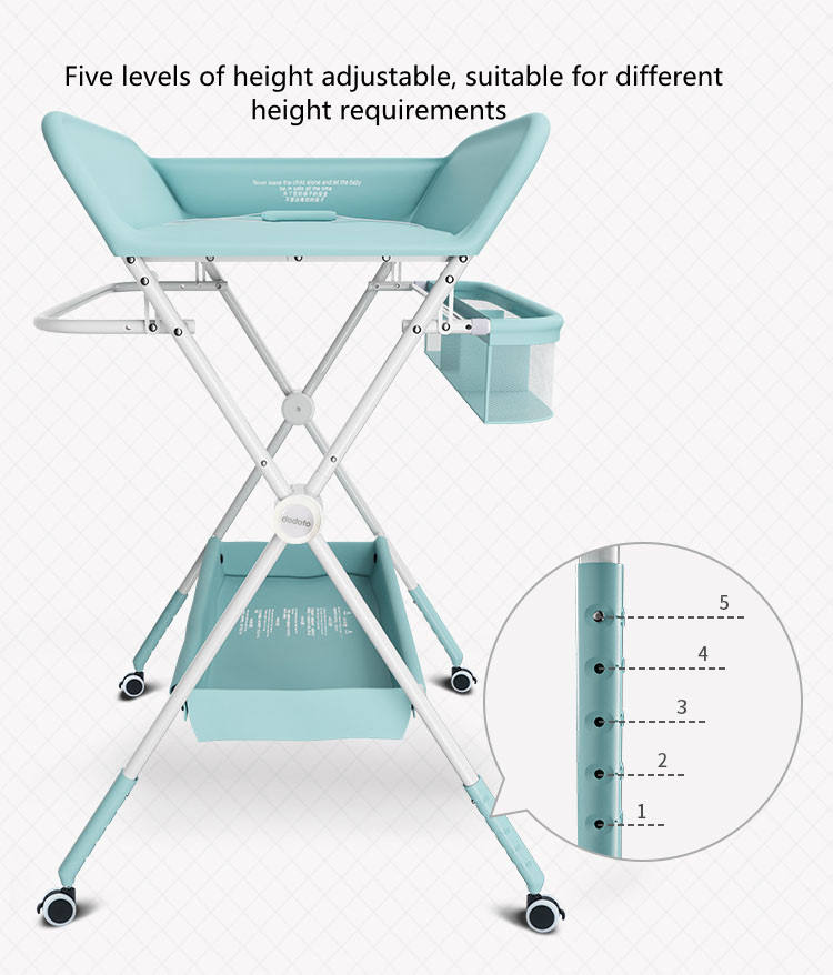 Cambiador de Pañales Portátil Plegable de Diseño Compacto, Ajustable en Altura, Impermeable, con Cajón de Almacenamiento Grande