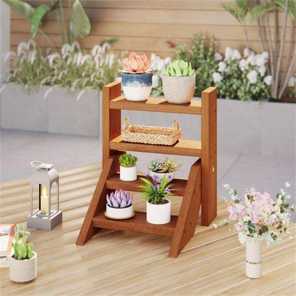 Soporte de Madera Compacto y Fácil de Montar para Plantas, para Ventana, Balcón, Escritorio, Estante de Exhibición para Macetas de Suculentas y Plántulas