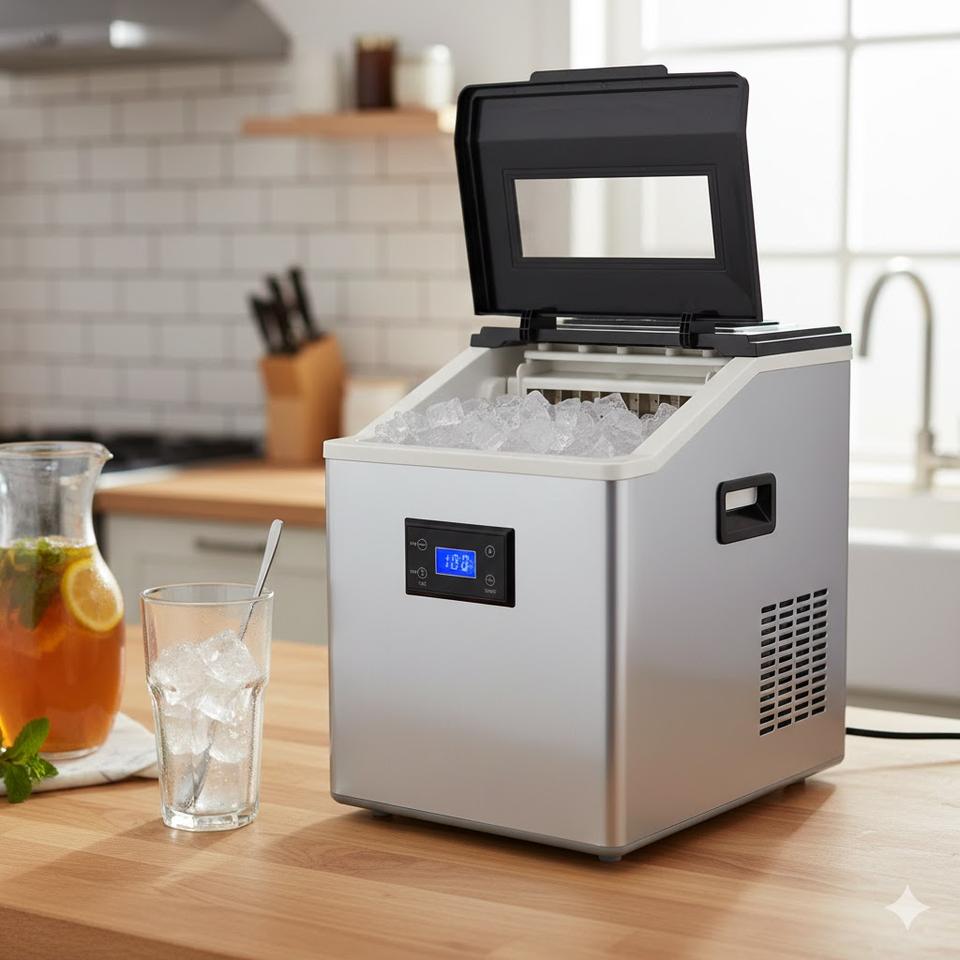 Máquina de Hielo Compacta de Acero Inoxidable con Ahorro de Energía, Motor y Rodamientos Duraderos para Hoteles, Estudios, Reuniones y Fiestas
