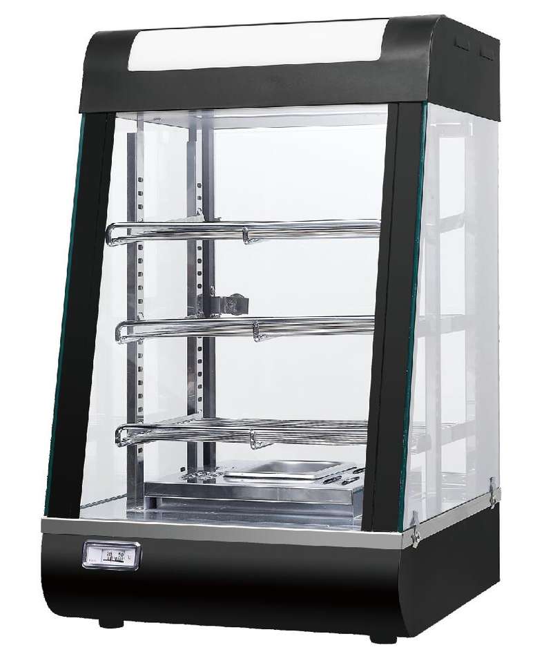 Vitrina Compacta para Exhibición de Alimentos con Calefacción de 1.0KW 220V 19Kg con Marco de Madera para Mostrador de Cafetería o Panadería