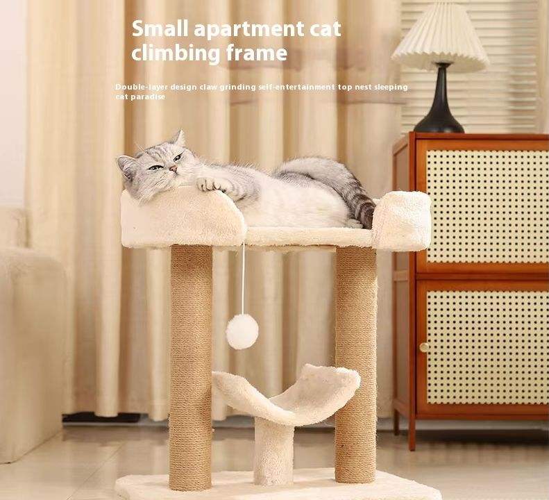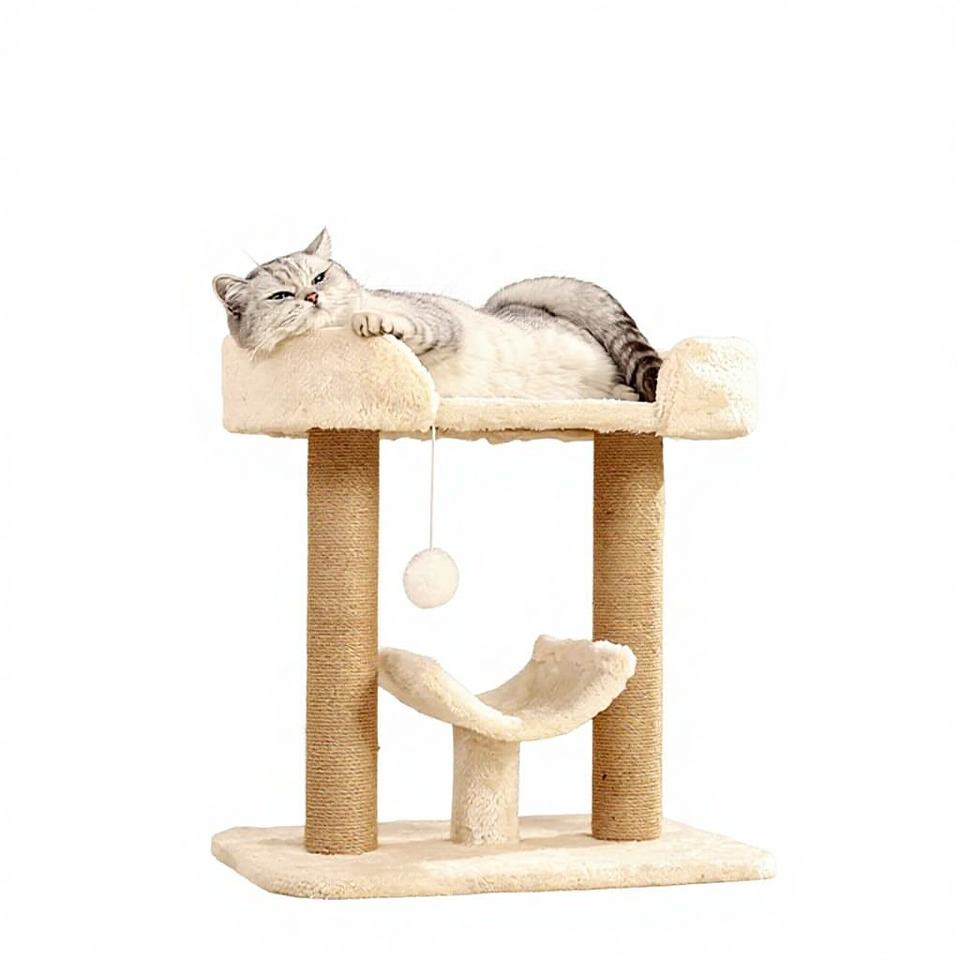 Árbol Compacto para Gatos de Interior con Poste Rascador de Sisal, Hamaca, Plataforma de Felpa, Torre Pequeña para Gatos para Apartamento
