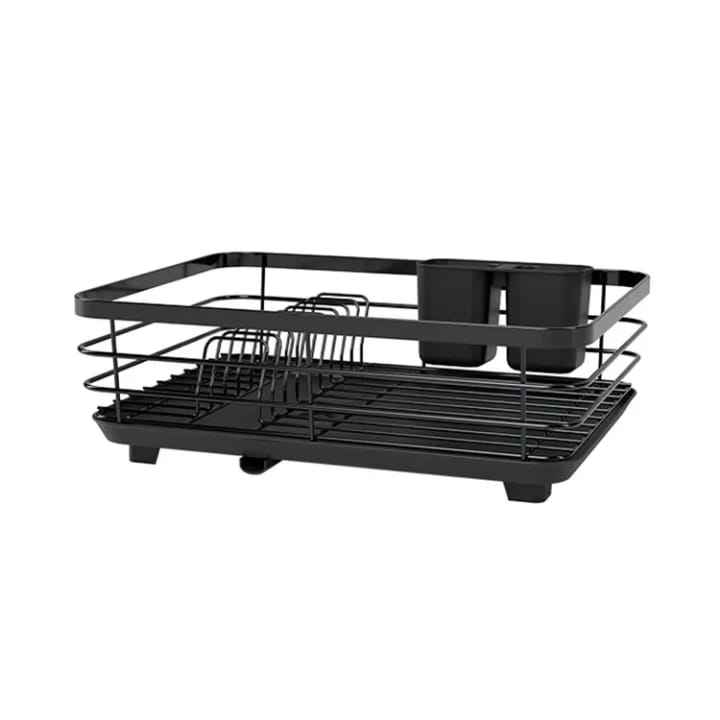 Escurridor de Platos Compacto para Cocina con Portacubiertos y Bandeja de Agua Integrados, Escurridor de Platos Moderno y Minimalista para Encimera