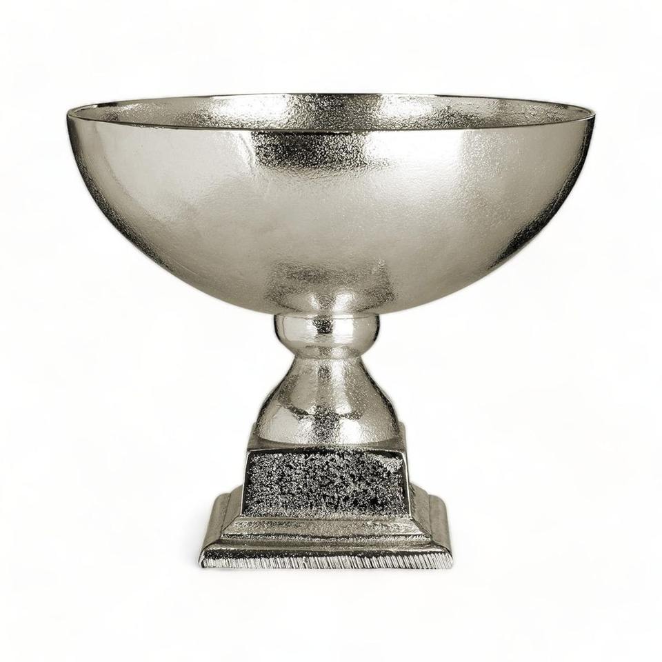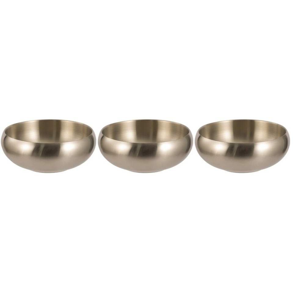 Tazón de chocolate metálico compacto, fácil de colocar en mesas y que ofrece una presentación elegante.