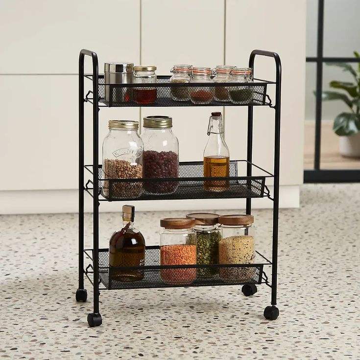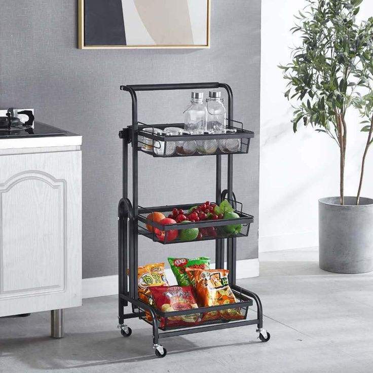 Carrito de Almacenamiento Compacto de Metal con Ruedas para Cocina, Organizador de Cestas de Verduras y Estante de Despensa