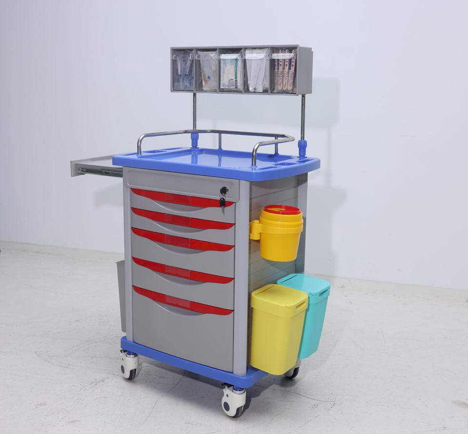 Carro de soporte de anestesia ABS moderno y compacto, bandejas de medicamentos transparentes, segregación de residuos, bloqueo Individual para Hospital, comedor, escuela