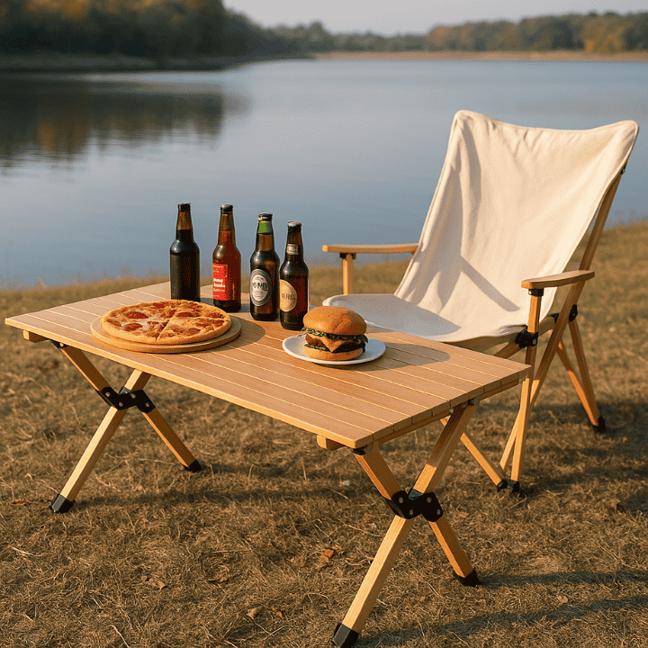 Mesa de comedor extensible compacta para exteriores, diseño moderno de acero inoxidable, portátil y duradero