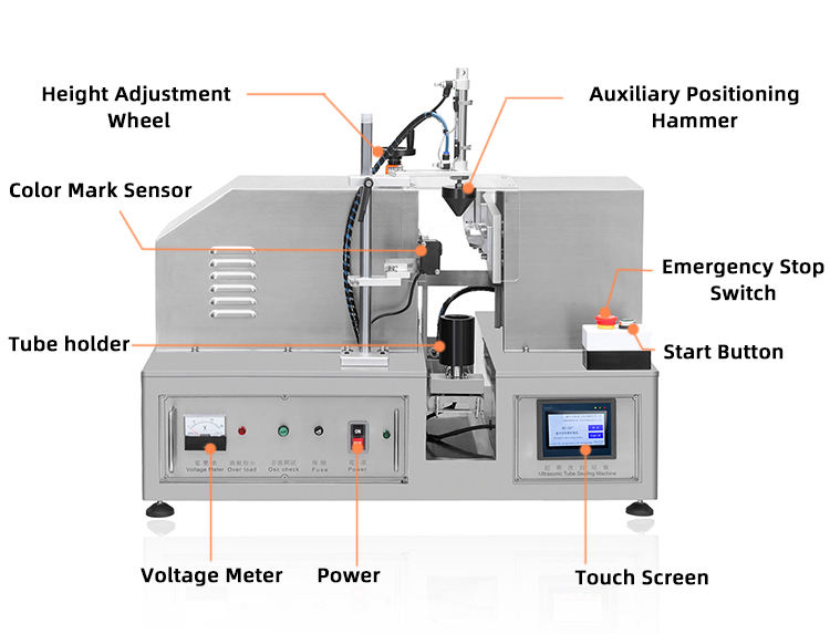 Máquina de sellado de extremo de tubo de plástico compacta con código de fecha, corte de prensado de cola de crema ultrasónico semiautomático 60Hz para pequeñas empresas