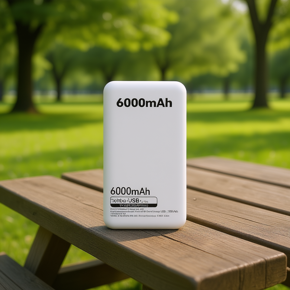 Power bank compacto 6000mAh Cargador USB portátil con soporte de carga rápida Batería Li-Polymer Salida USB única Entrada Micro USB
