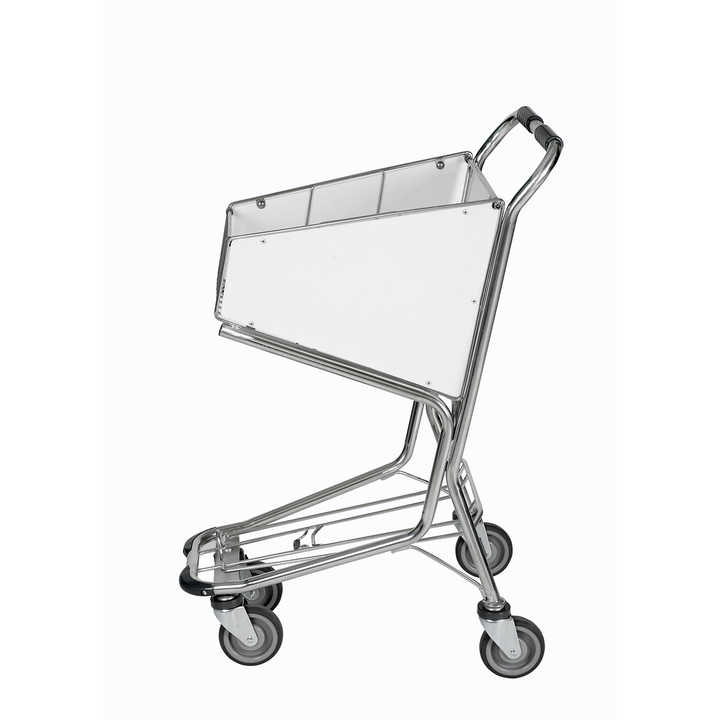 Carrito Rodante Compacto con Dos Niveles de Almacenamiento, Frente Transparente y Ruedas, Ideal para Aeropuertos y Supermercados