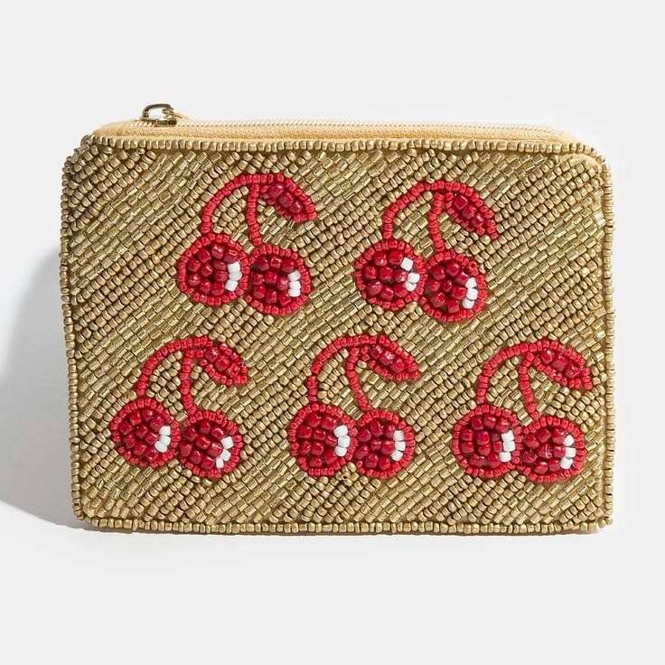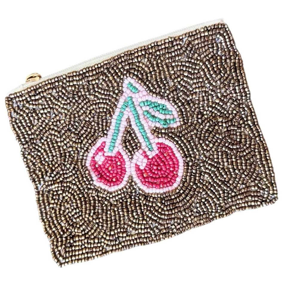 Monedero Compacto con Cuentas Decorativas, Diseño Elegante, Monedero Hecho a Mano con Cierre de Cremallera