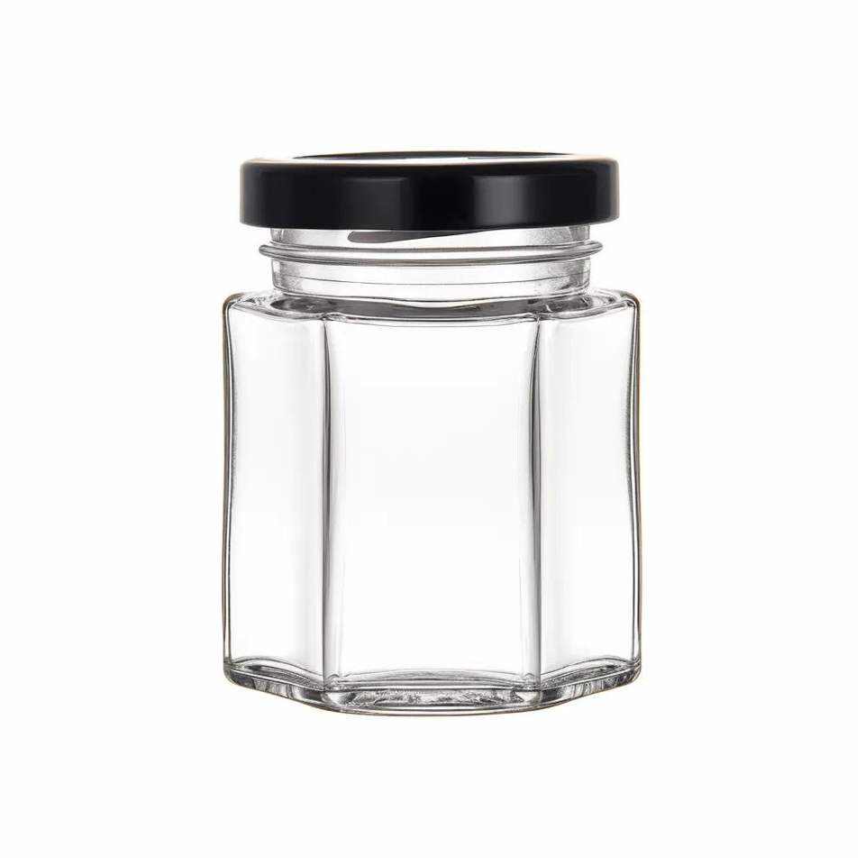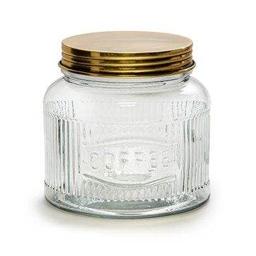Frasco de vidrio compacto con tapa metálica, perfecto para espacios pequeños en la cocina y para organizar los alimentos de manera adecuada.