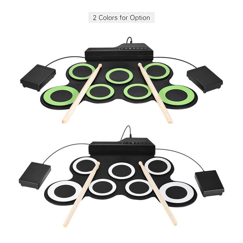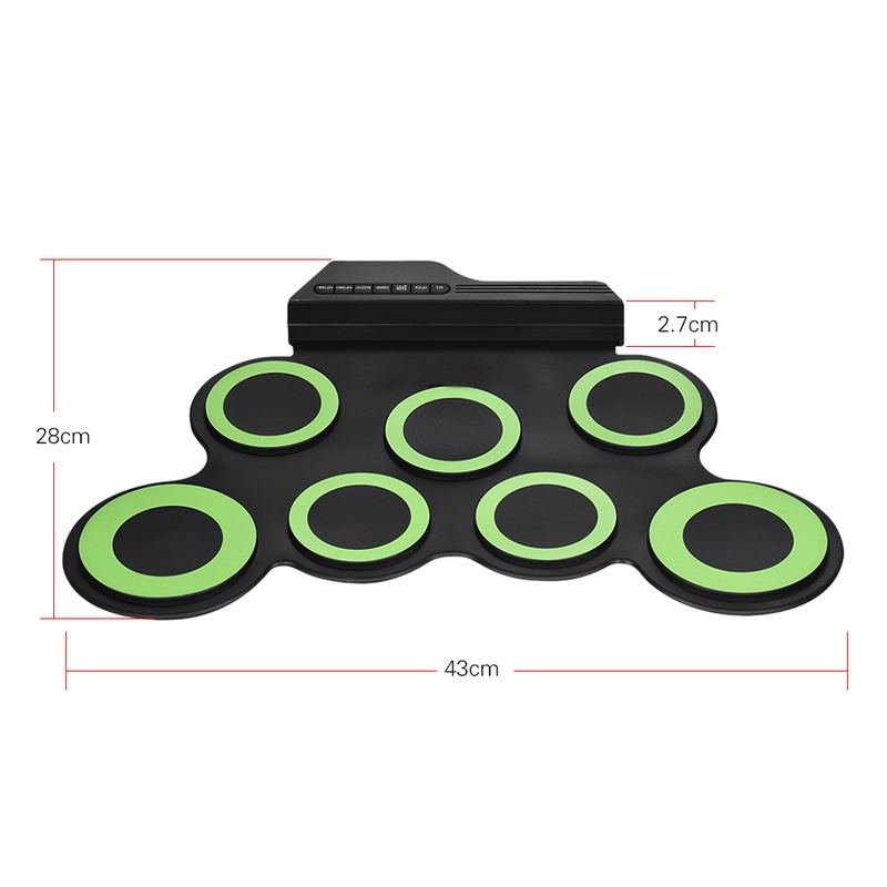 Kit de batería enrollable electrónica Digital portátil de tamaño compacto, 7 almohadillas de batería de silicona, alimentado por USB con baquetas, Pedal, Cable de 3,5mm