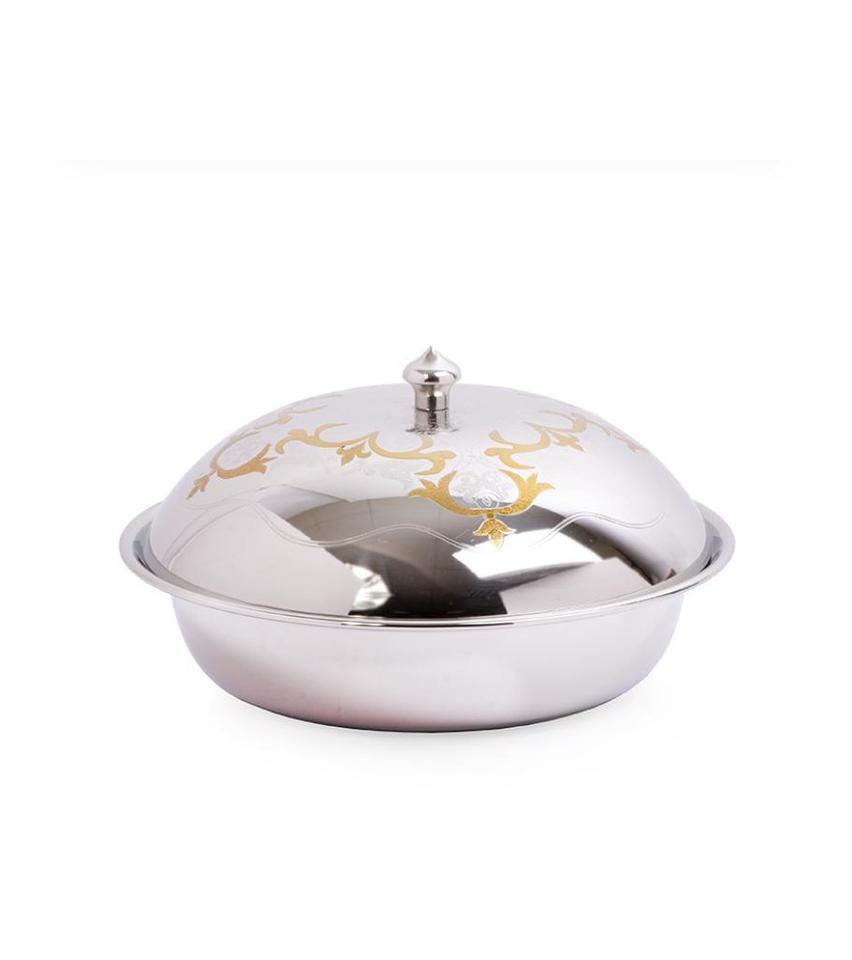 Bandeja de Servir Compacta de Acero Inoxidable con Tapa de Domo para un Fácil Manejo y Almacenamiento