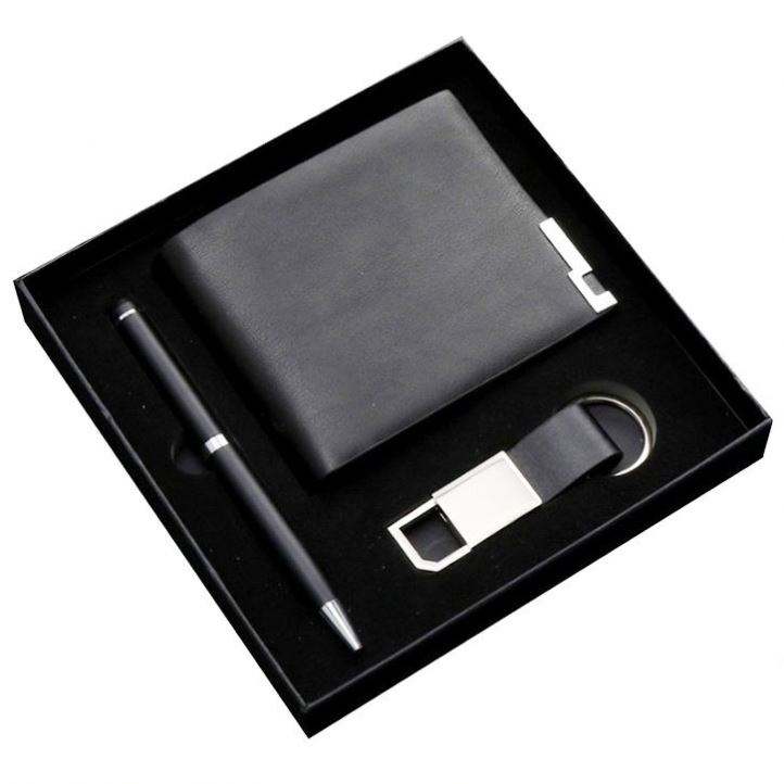 Set de Regalo con Logotipo de Empresa: Llavero, Bolígrafo, Cartera de Cuero para Reuniones Anuales y Eventos Empresariales