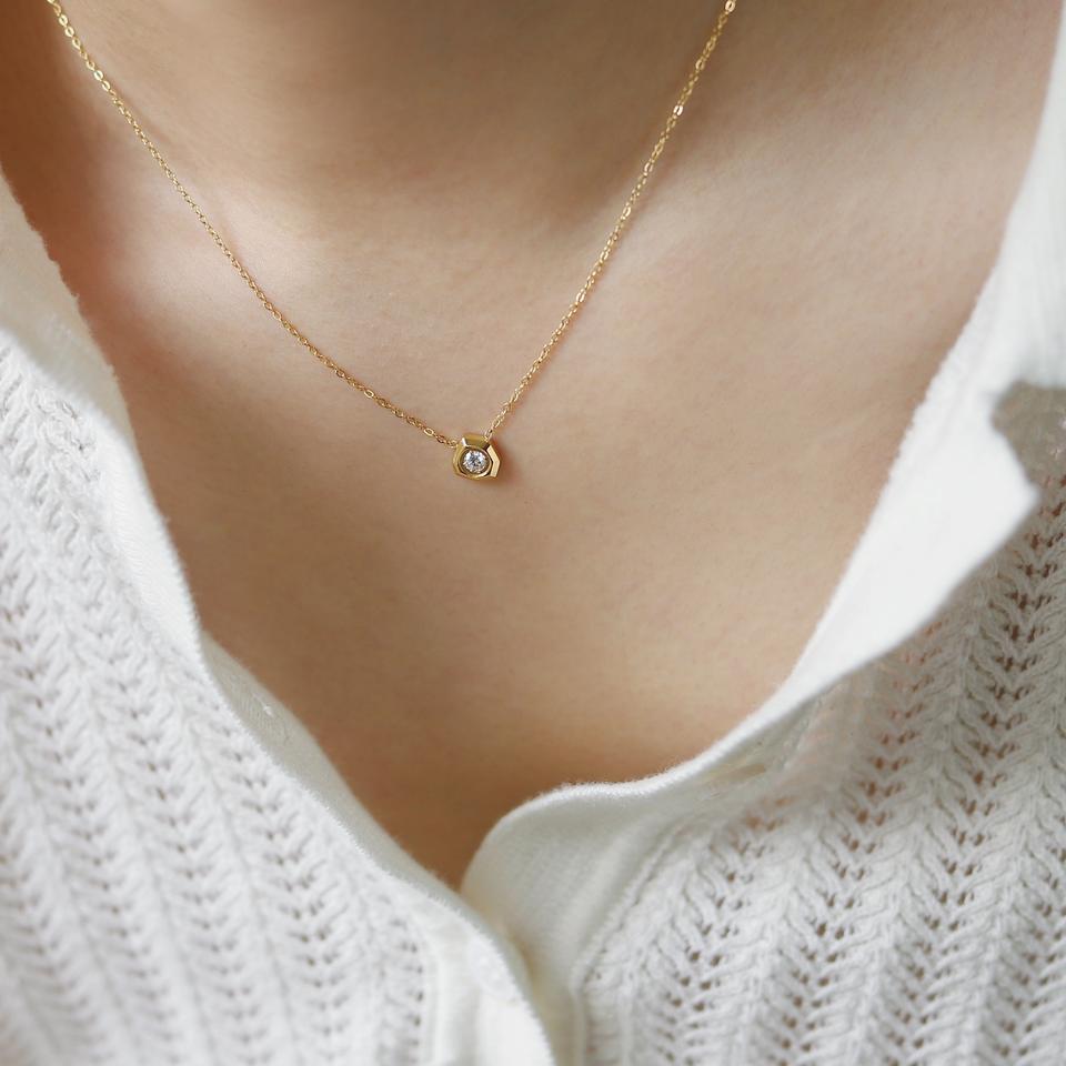 Collar con Colgante de Diamante Blanco Transparente Geométrico en Forma de Estrella, Chapado en Oro de 18 Quilates, Acero Inoxidable Antideslustre