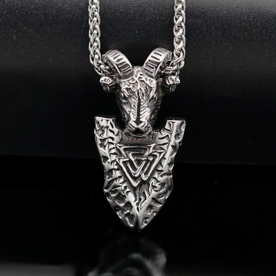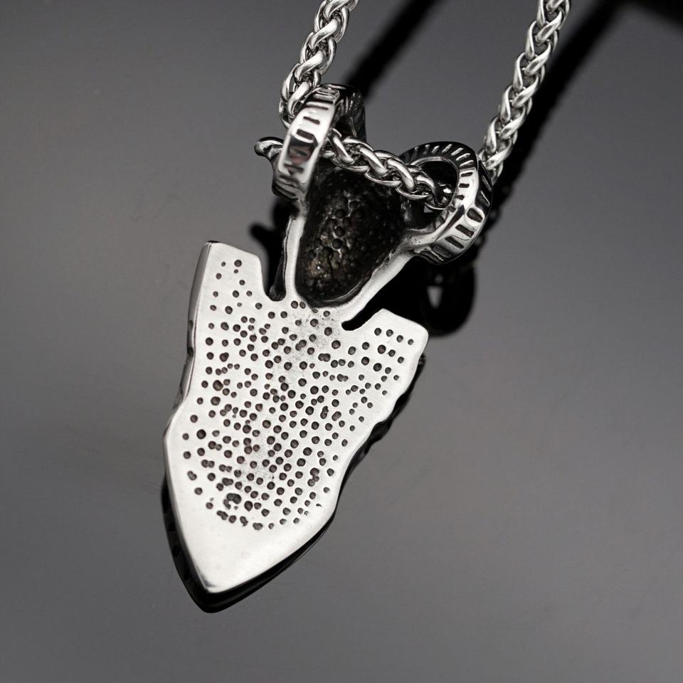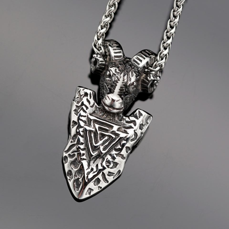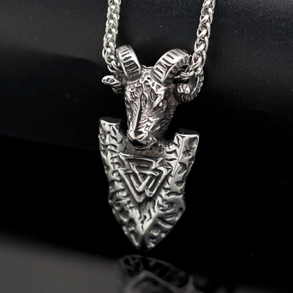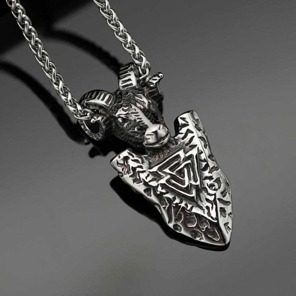 Colgante de acero de titanio con rúnas vikingas y flecha, cabeza de oveja, estilo europeo y americano, de acero inoxidable, mitología vikinga y piratas.