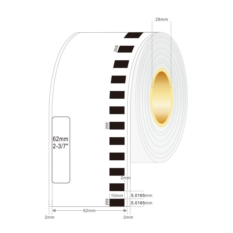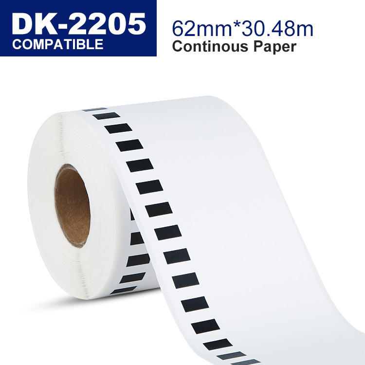 Rollo de etiquetas de código de barras con adhesivo térmico compatible con Brother, de 62mm x 30,48 M, rollo jumbo de etiquetas térmicas, DK2205, de 2 a m