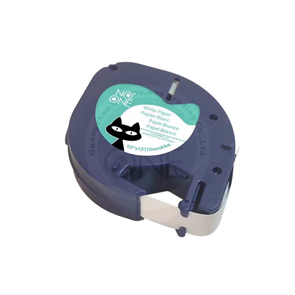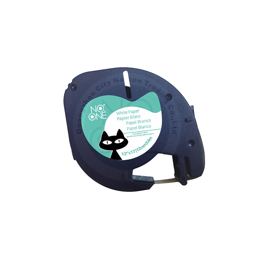 Cinta de Etiquetas Compatible con DYMO LetraTag LT 91330 91220 91200 59421, Negra sobre Blanca, 12 mm x 4 m, para Impresora de Etiquetas LT-100H LT-100T QX-50