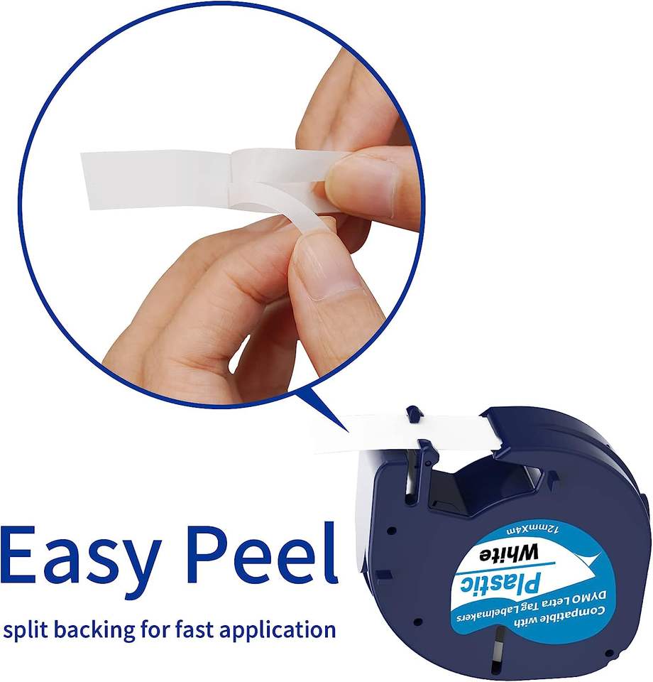 Cinta de Etiquetas Compatible con Dymo LetraTag, Repuesto para 91201, 91331, 91221, 59422, S0721610, 12 mm x 4 m, Negro sobre Blanco, Plástico