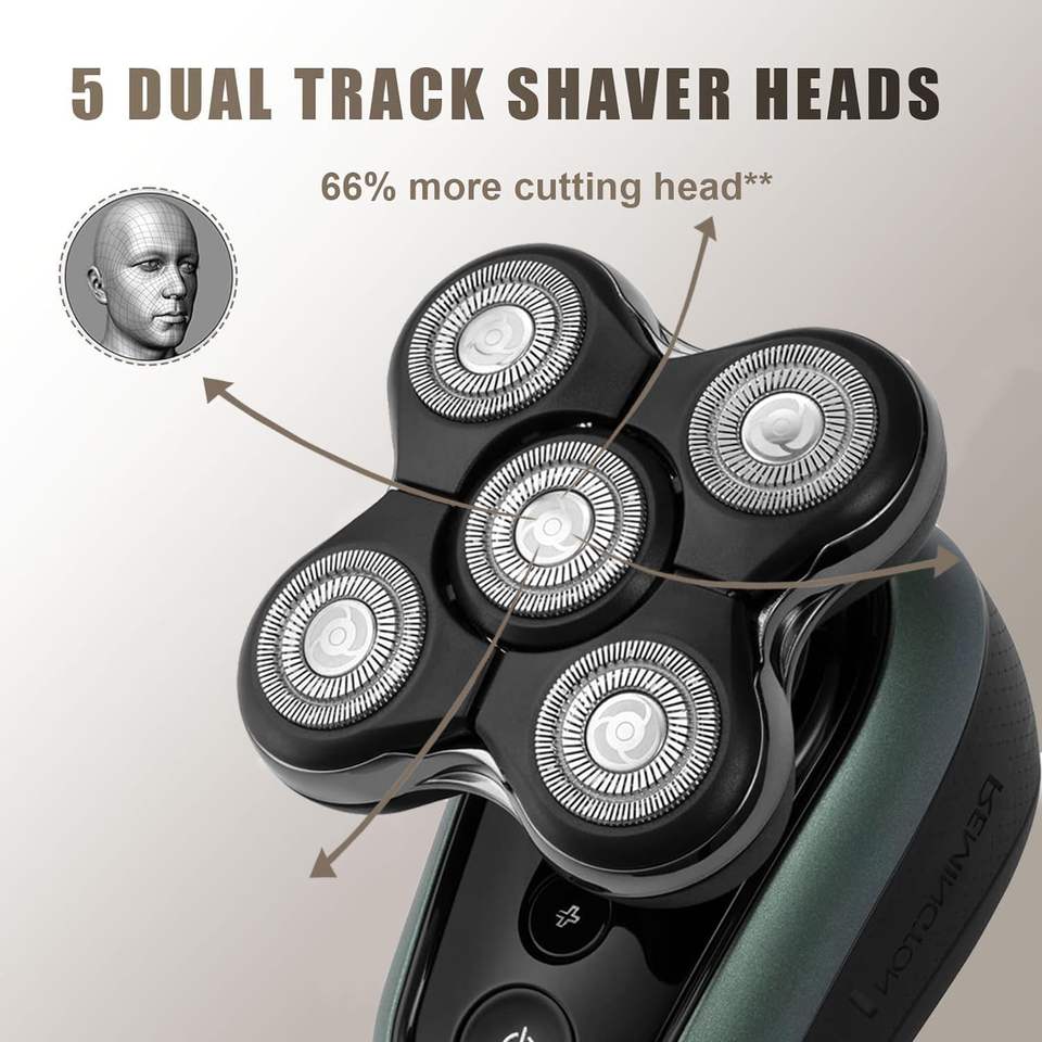 Cabezal de Repuesto Compatible para Afeitadora Eléctrica, Cinco Cuchillas, Uso en Seco/Húmedo, Características de Cuchilla Triple/Doble para Afeitar Cara y Barba, Lavable