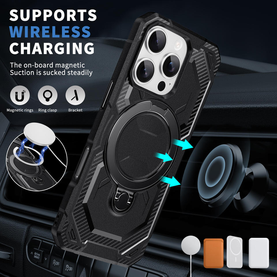 Funda protectora con diseño de armadura TPU + PC Compatible para soporte giratorio 16E, soporte magnético para coche, protección anticaída a prueba de golpes