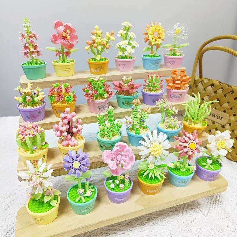Compatible con Bloques de Construcción, Juego de 40 Piezas de Plantas Suculentas en Maceta, Modelo de Adorno, Juguete de Flores de Micropartículas para Niños