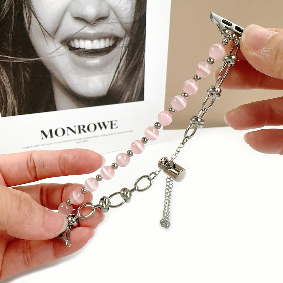 Cadena de acero con cuentas de piedra ojo de gatoDiseño de la banda del reloj
