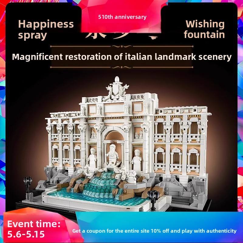 Compatible con la Serie 21062 de Construcción, Fuente de Trevi Romana, Bloques de Construcción Educativos Retro, Modelo de Plástico para Armar