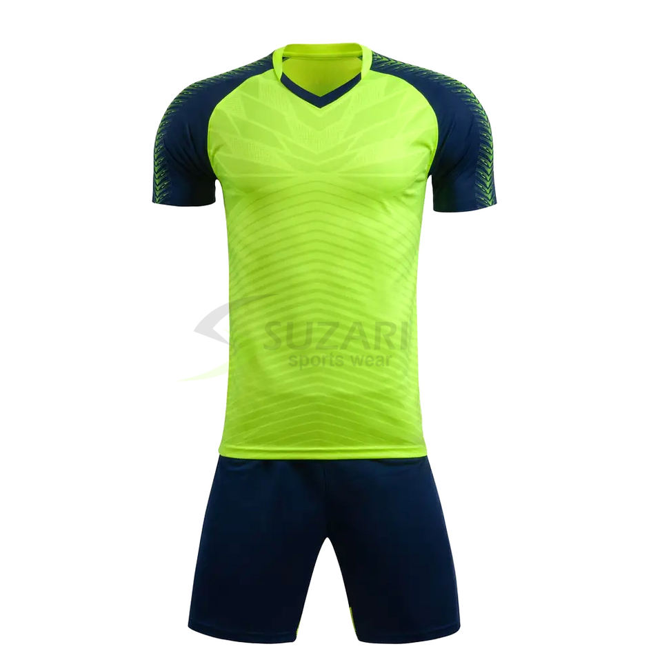 Competición Juego Entrenamiento Bloque de color Último diseño Hombres usan manga corta Azul Verde Juego de deportes Uniformes de fútbol
