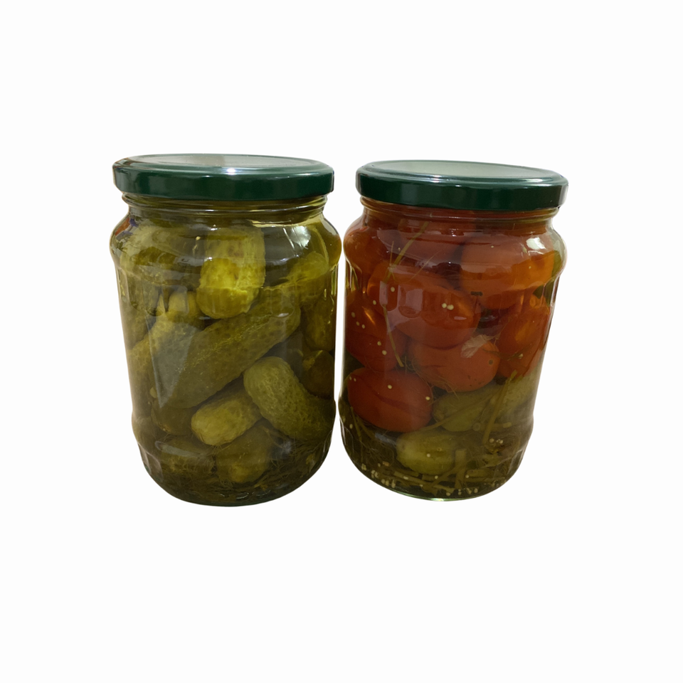 Contenido:Pepinos encurtidos y tomates en vinagre 720ml