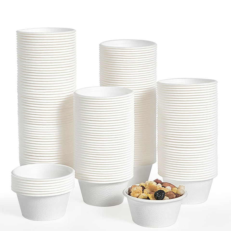 Precio competitivo, pulpa de bagazo biodegradable, taza desechable para salsa de pulpa de caña de azúcar, respetuosa con el medio ambiente, tapa de taza de bagazo para sacar para salsa