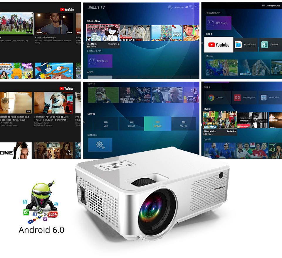 Proyector Inteligente Wifi Android Cheerlux C9A 720p con Precio Competitivo, Proyector LED LCD con Conexión a TV para Uso Doméstico