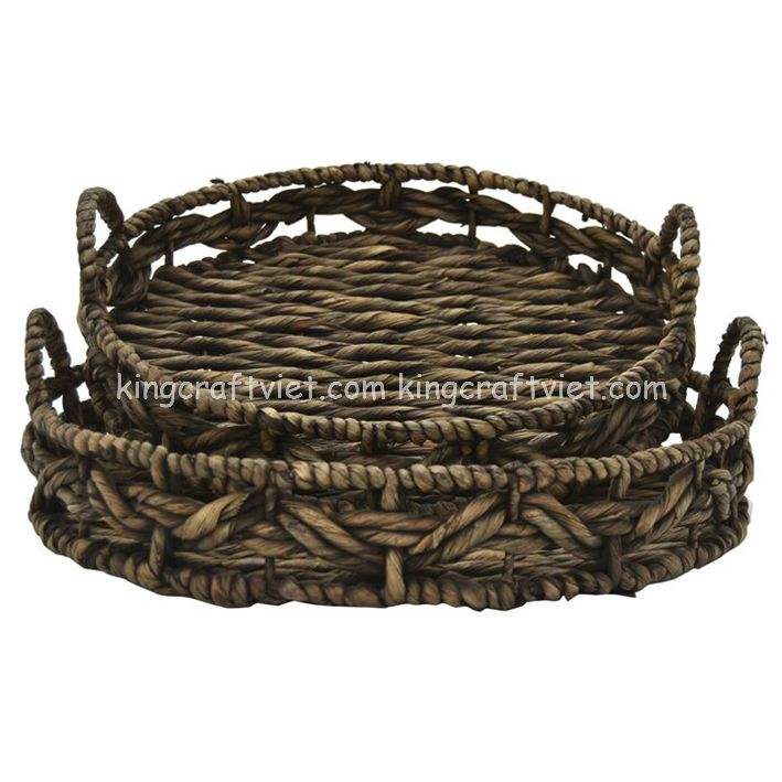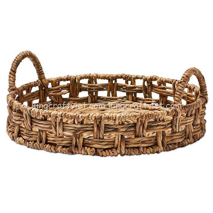 Bandeja de jacinto de agua hecha a mano a precio competitivo con asa, cesta de servicio reutilizable al por mayor, cesta de almacenamiento de bandeja de Vietnam
