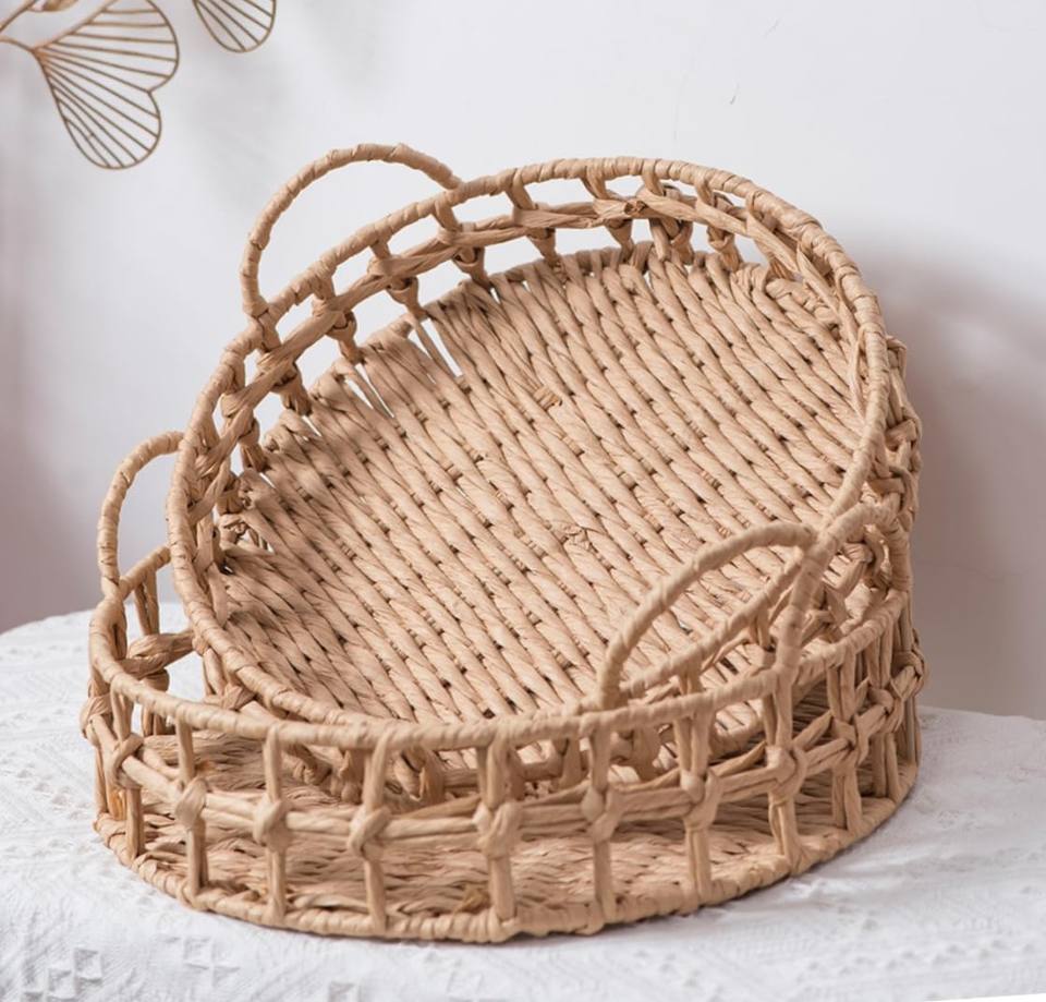 Bandeja tejida a mano de jacinto de agua, bandeja de desayuno, bandeja de pan, bandeja tejida