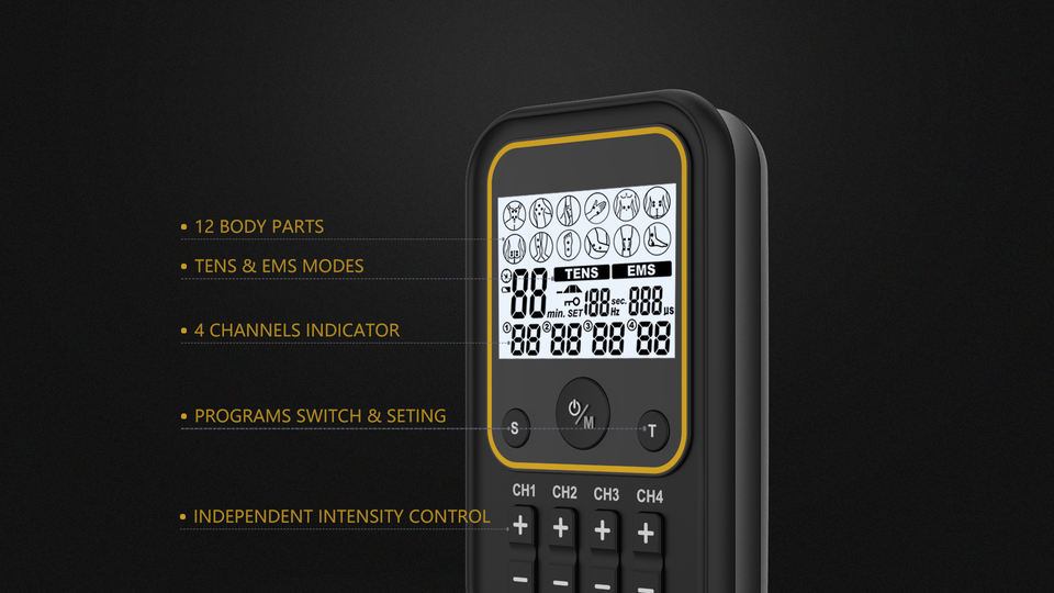 Nombre:Máquina de masaje para alivio del dolor con 4 canales TENS EMS