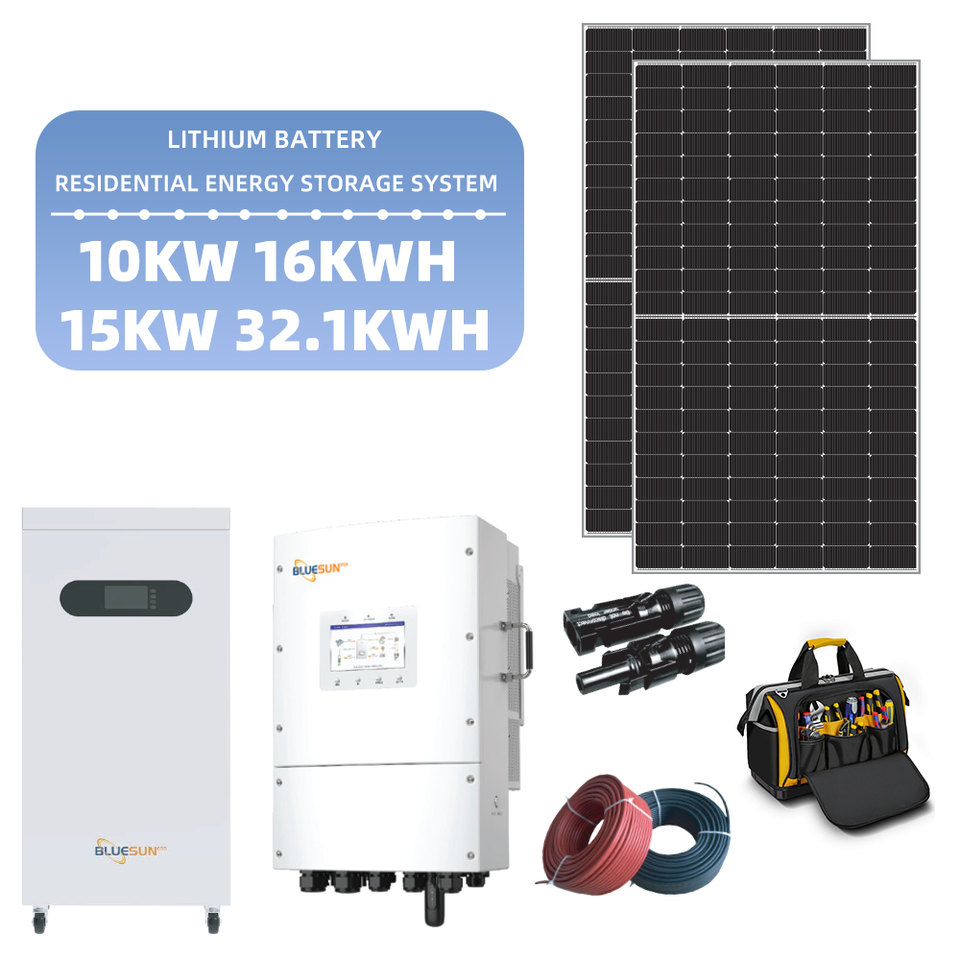 Sistema de Energía Solar Completo de 10kW 15kWh Bluesun con Inversor Híbrido Trifásico y Almacenamiento de Batería para el Hogar