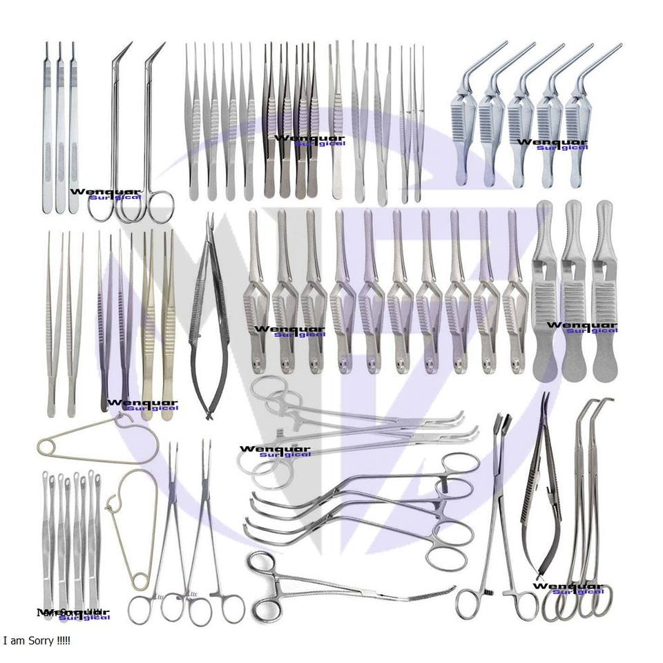 Juego completo de 62 piezas de cirugía vascular, instrumentos quirúrgicos reutilizables de acero inoxidable para operaciones vasculares mayores