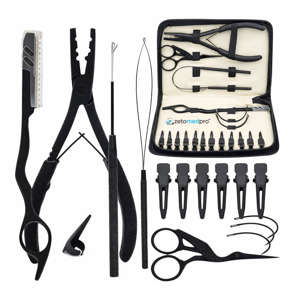 Kit completo de herramientas para la instalación de extensiones de cabello