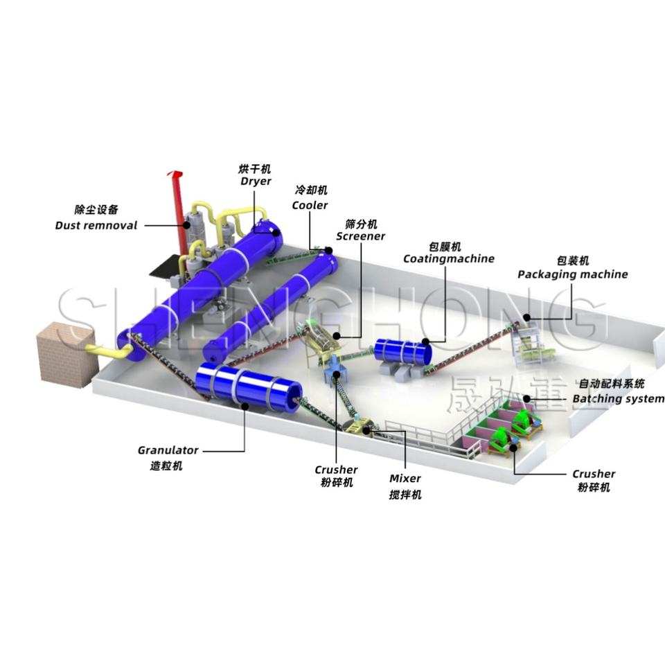 Nombre:línea de producción de fertilizantes orgánicos con tambor rotativo para compostaje de estiércol