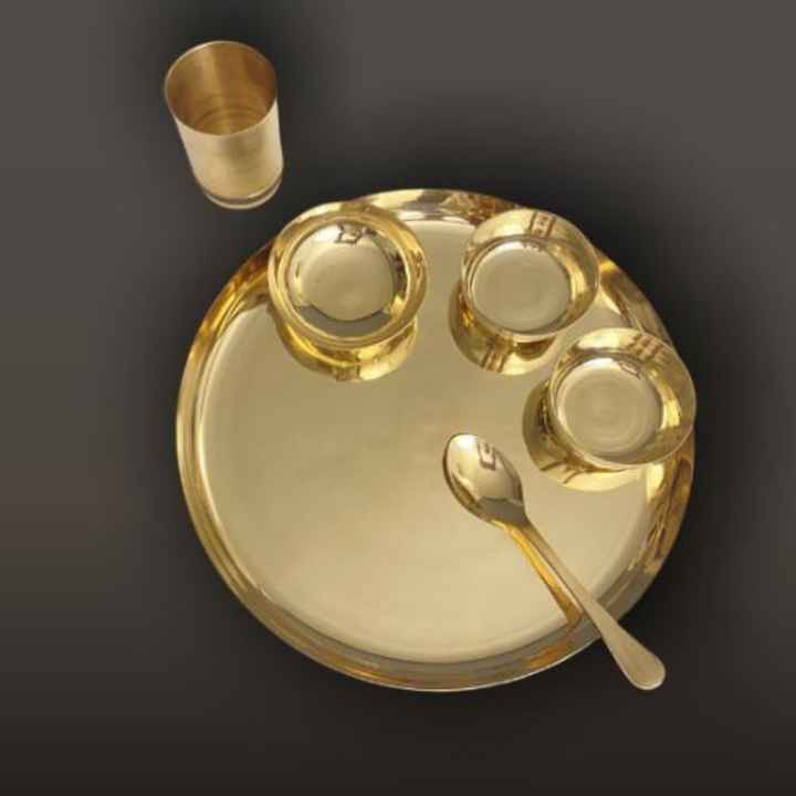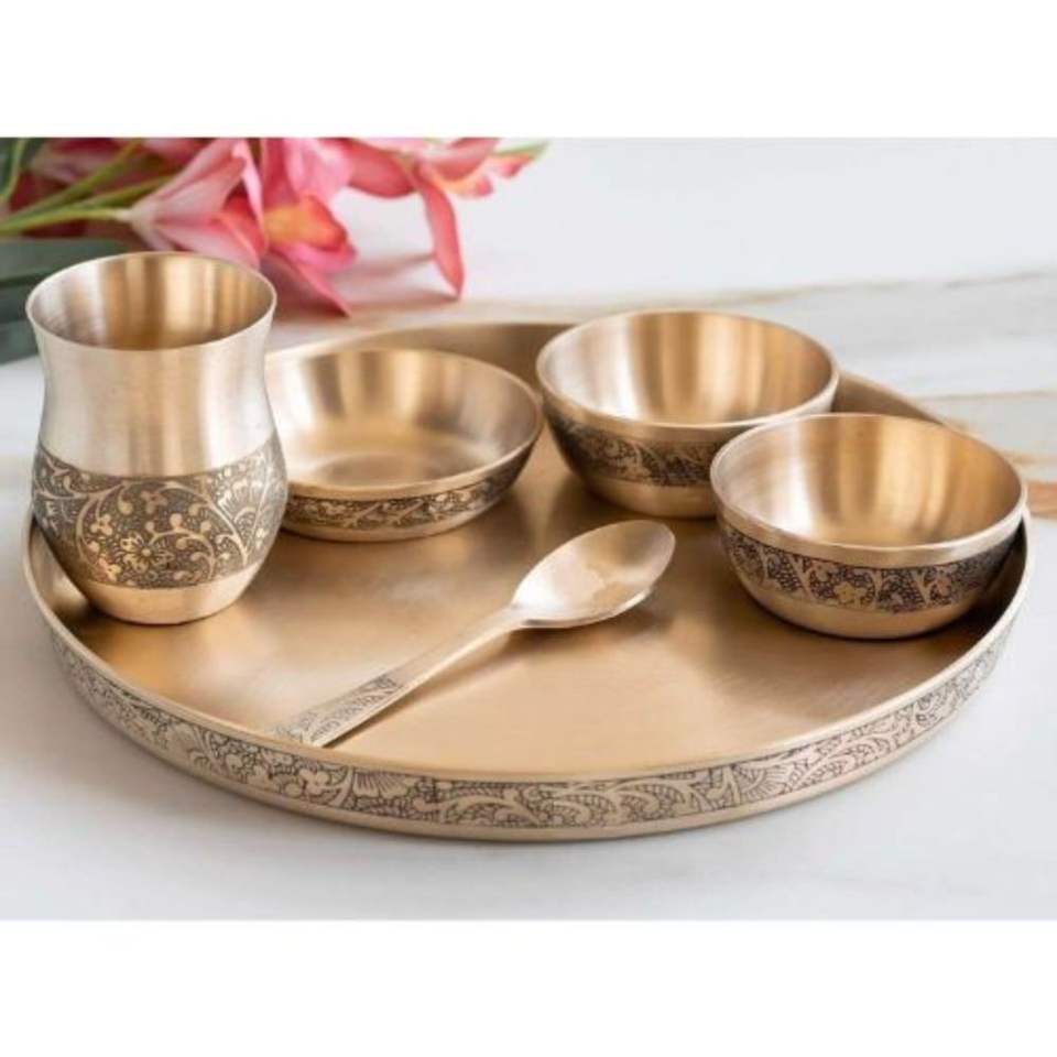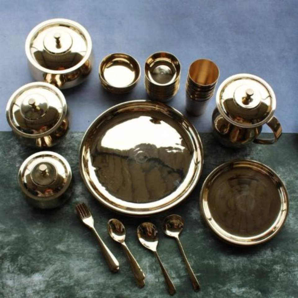 Juego de Vajilla Completo de Bronce Kansa con Platos, Tazones, Vasos y Cucharas para Servir con Elegancia en la Mesa
