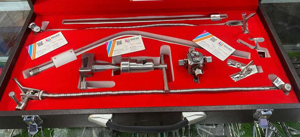 Juego Completo de Retractor Cerebral Leyla con Brazos Flexibles Ajustables y Estuche de Madera Manual Mahersi