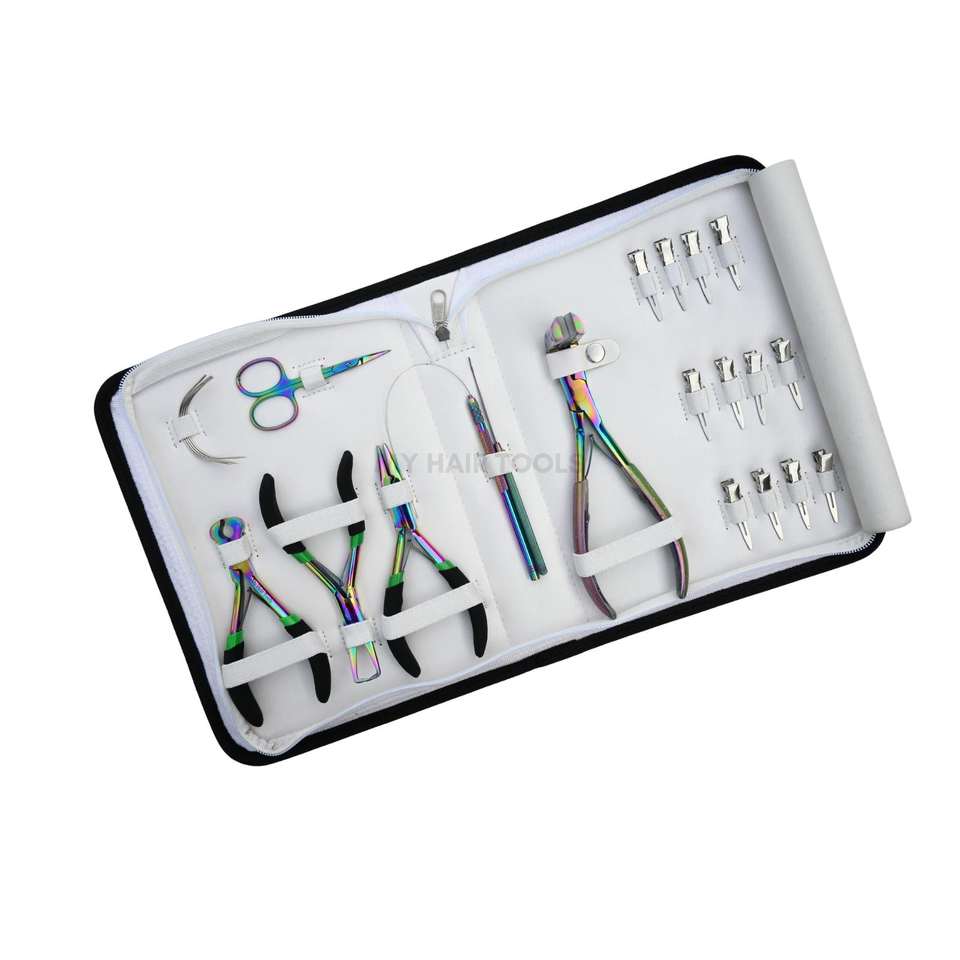 Palabras clave:Kit de herramientas para extensiones de cabello arcoíris, alicates para extensiones de cabello, extensiones de cabello