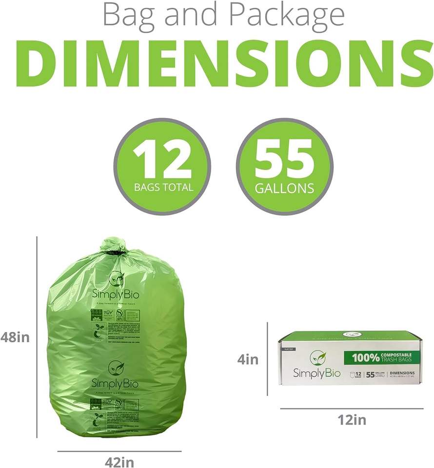 Bolsas de Basura Compostables de 50-55 Galones con Parte Superior Plana, Bolsas Resistentes Extra Gruesas para Desechos de Jardín y Césped, ASTM D6400, BPI