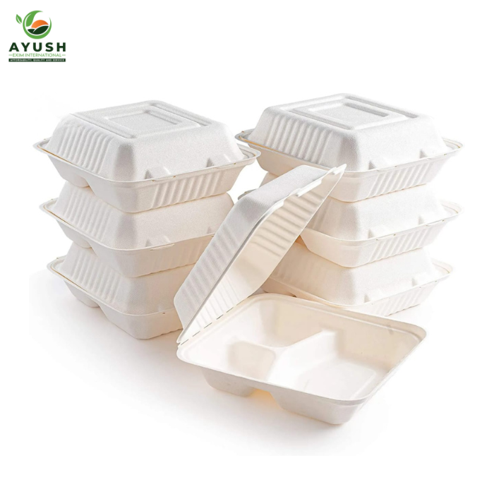 Contenedores Compostables de Bagazo con Separadores y Tapa para Separar Arroz, Curry y Guarniciones
