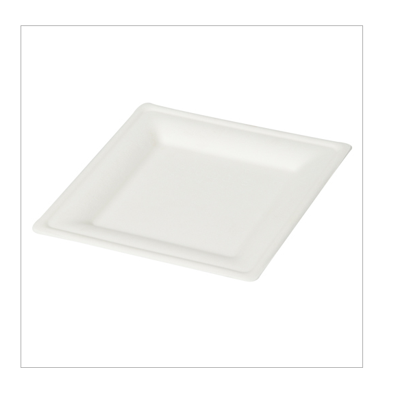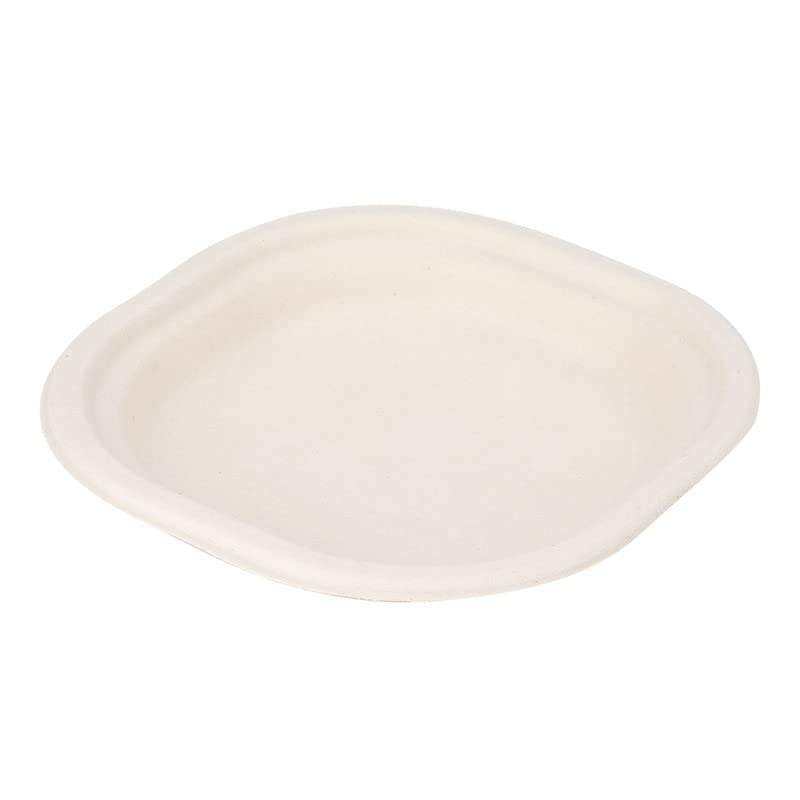 Plato Cuadrado de Bagazo Blanco Compostable de 9 Pulgadas, Plato Desechable Resistente para Alimentos, para Fiestas, Catering, Comida para Llevar y Restaurantes
