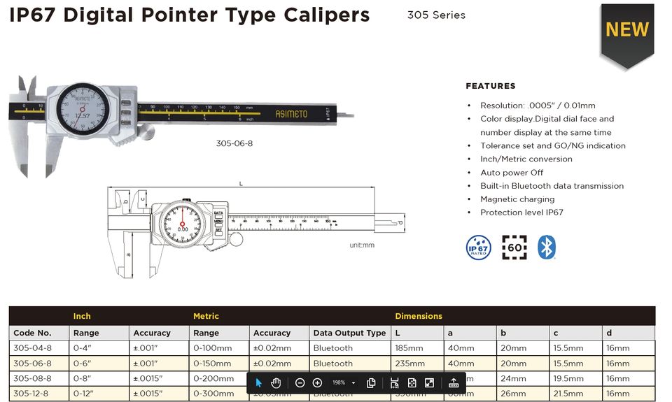 ElegirColor: Calibrador Digital Tipo Puntero IP67 en Pulgadas o Métrico