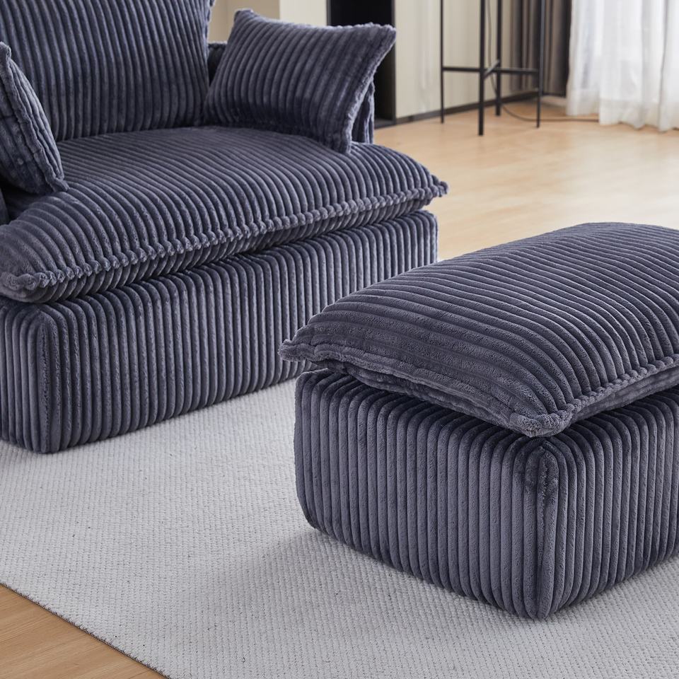 Silla comprimida con otomana, sofá de pana en la nube, silla cama para sala de estar, dormitorio, balcón, sala de lectura, gris oscuro