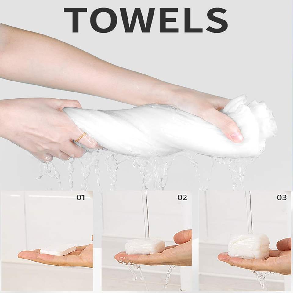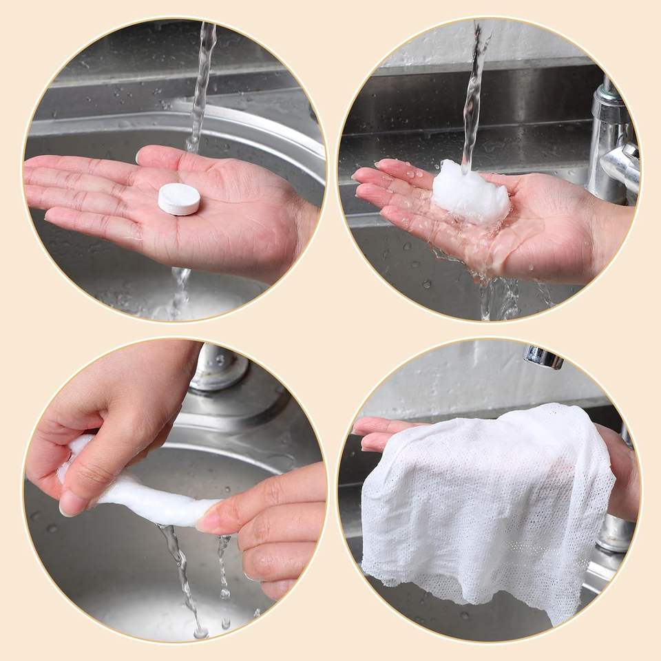 Paños desechables comprimidos, toallas de limpieza facial portátiles, artículos esenciales de viaje húmedos/secos gruesos