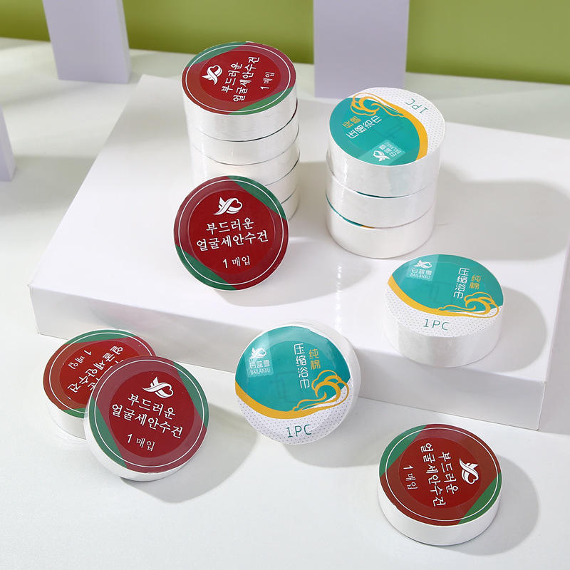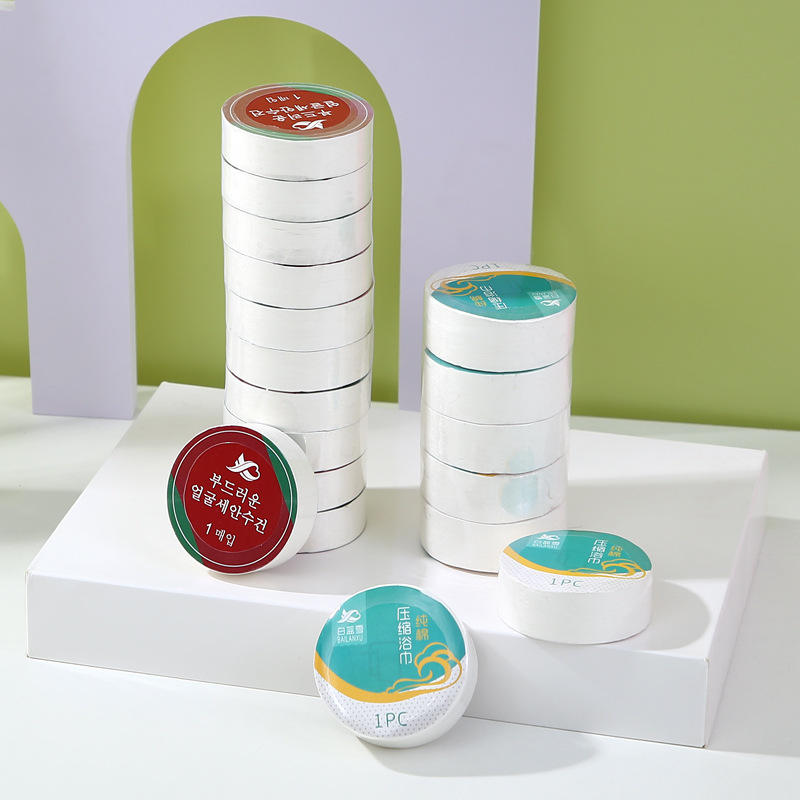 Toalla Comprimida de Algodón Puro, Desechable, Portátil, Tamaño de Viaje 25x50cm 35x75cm 60x100cm 70x140cm, Redonda, Color Sólido