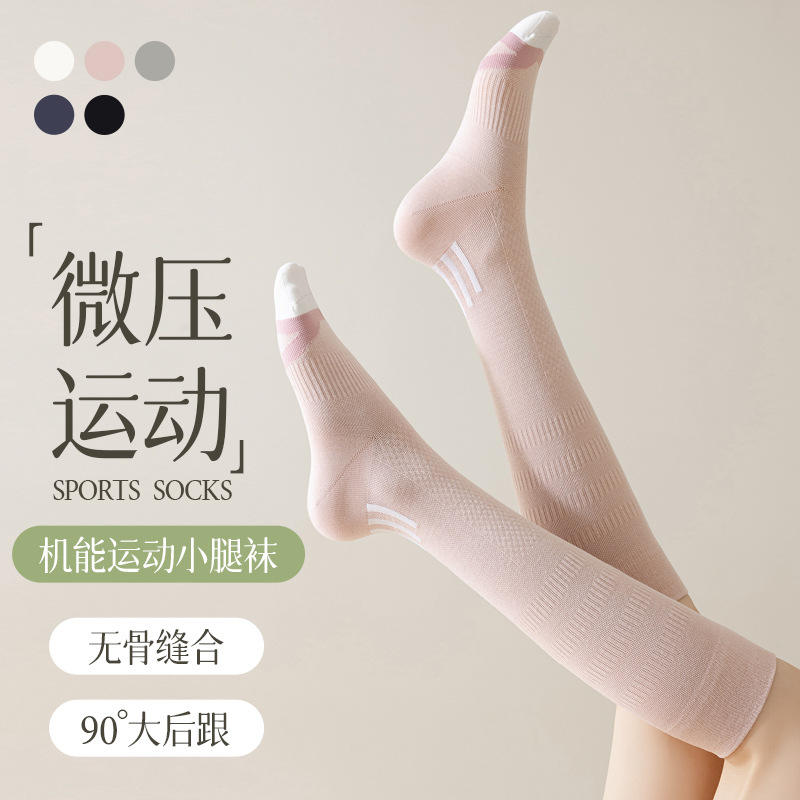 Compression Calf Socks Seamless Toe Cotton Women Running Yoga Bike Sport Socks Gray White Pink Navy Blue Black